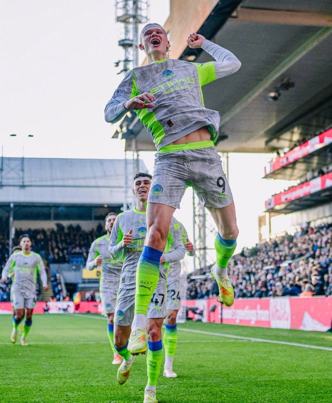 第69分钟曼城中场断球后迅速推反击,福登大禁区前沿,接到谢尔基的分球后远射破门,将领先的优势扩大到了2球,这也是曼城太子在近四轮联赛创造的第7球(6粒进球和1次助攻),比赛最后时刻,萨维尼奥单刀被水晶宫门将放倒,为曼城赢得一粒点球,哈兰德主罚命中,将全场比分定格为了3-0,打进个人英超第102球的哈兰德,距离C罗生涯进球纪录只差1球。