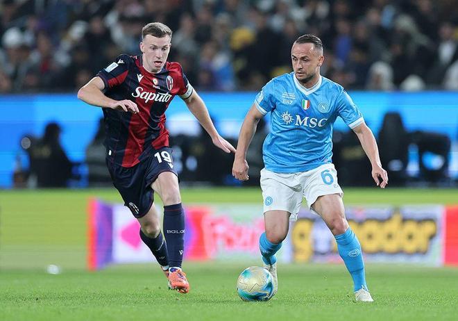 比赛伊始,那不勒斯便牢牢掌控场上主动权,博洛尼亚仿佛在场上“隐形”——难道是半决赛对阵国米耗费了过多体力?上半场,温琴佐・伊塔利亚诺执教的博洛尼亚未能创造任何一次有威胁的进攻机会,更令人担忧的是,他们频繁给那不勒斯留出危险进攻空间。