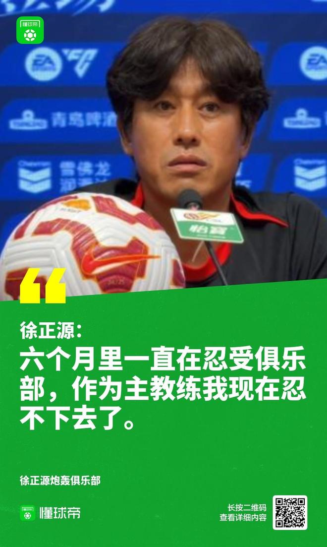 徐正源表示:“六个月里一直在忍受俱乐部, 作为主教练,我现在忍不下去了,我不能只是袖手旁观。从冬天开始,俱乐部就不信任我们的教练团队,后来还开除了医务组成员、开除了翻译,冬训时所有教练合同都是三月份才签订的。现在我能做的决定很少,下半赛季面临三线作战,但俱乐部没有跟我进行任何沟通,包括球员外租转会我也不知情。作为主教练,我不能容忍这样的情况发生。”