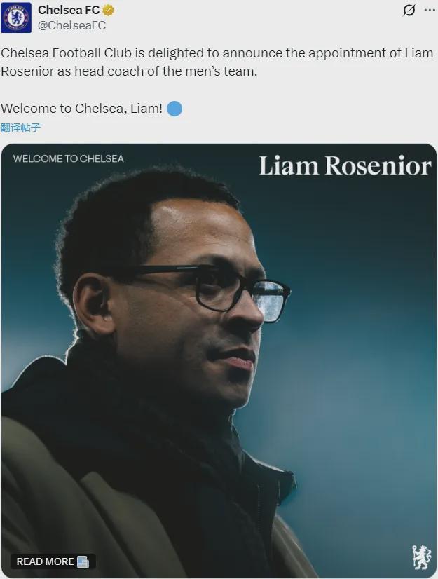 官方:切尔西宣布任命利亚姆-罗塞尼尔为主帅,双方签下了一份2032年到期的长合同。